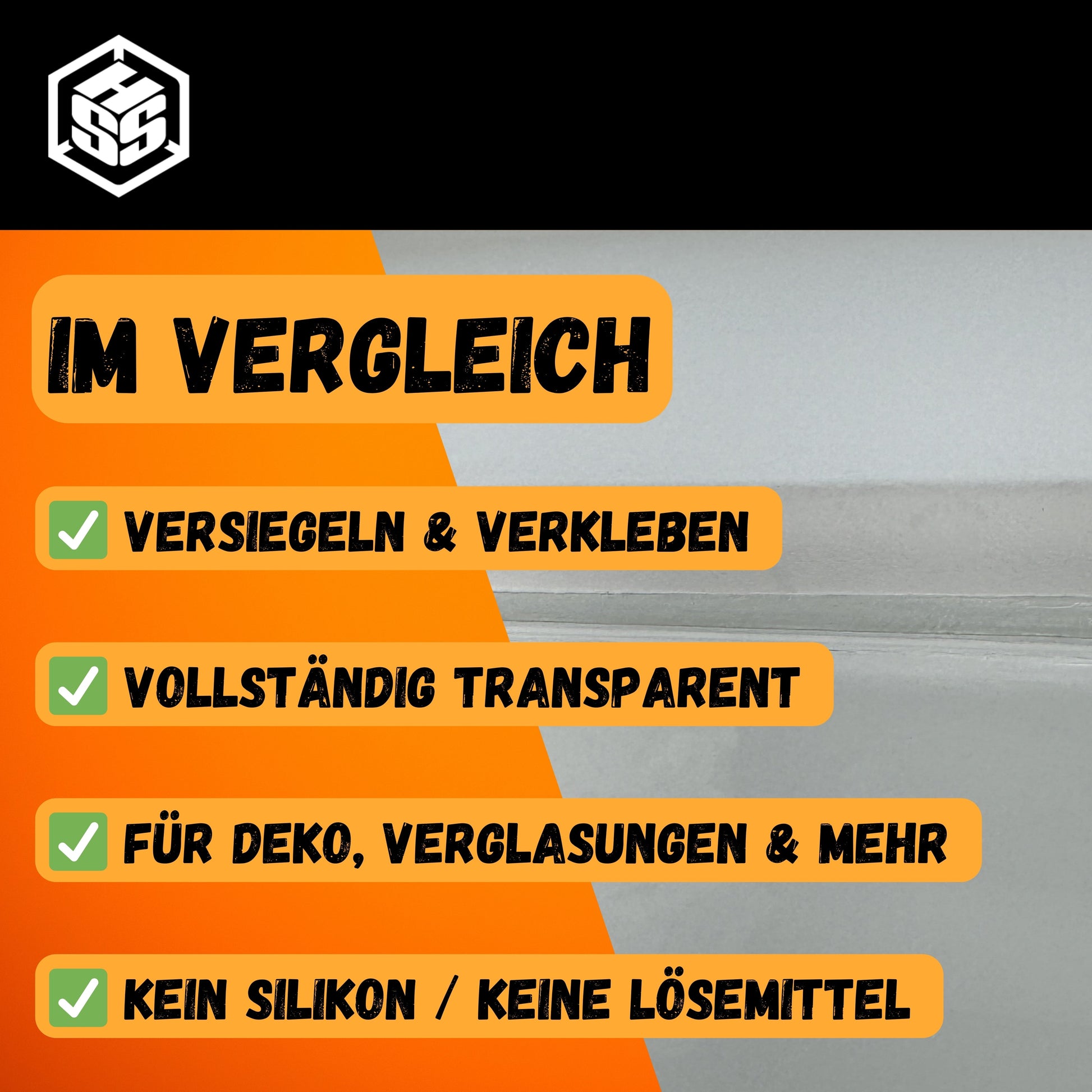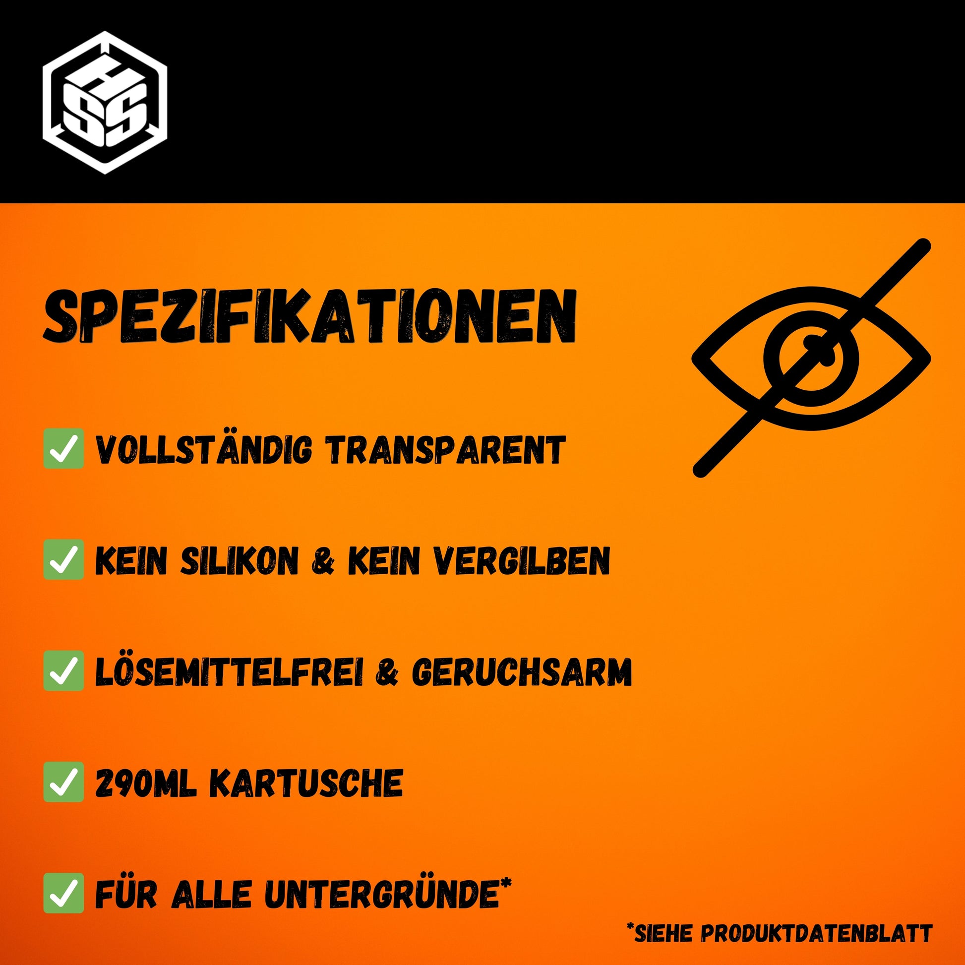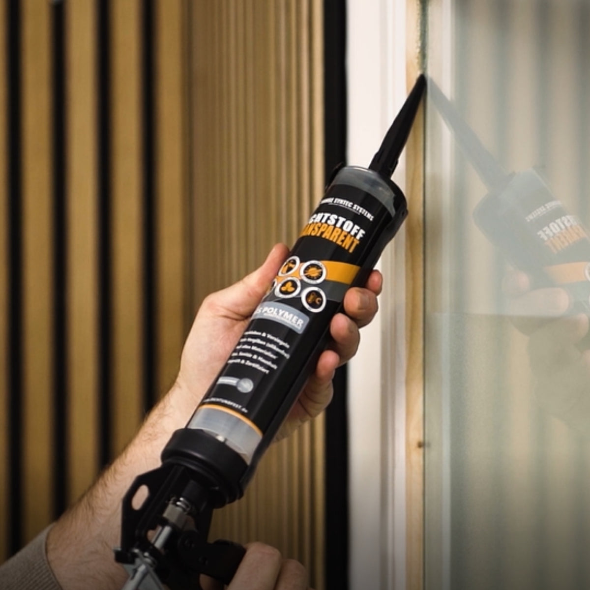 Der HSS Dichtstoff TRANSPARENT ist ein elastischer, einkomponentiger Dicht- und Klebstoff auf Basis von MS-Polymeren. Er ist lösungsmittel- und isocyanatfrei und eignet sich ideal für unsichtbare Abdichtungen und Verklebungen.