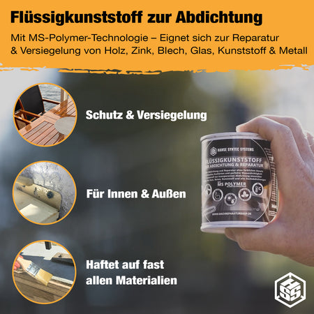 • Vielseitig einsetzbar: Reparatur & Versiegelung auf Holz, Zink, Blech, Glas, Kunststoffen oder Metallen – flexibel für viele Materialien.