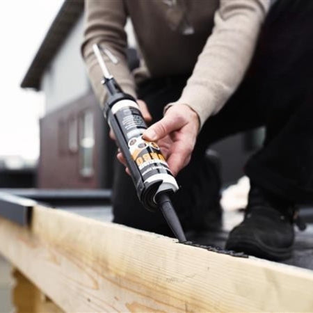 Der Kleber ist frei von Lösemitteln und Isocyanaten und überzeugt durch seine UV- und witterungsbeständige Zusammensetzung. Dank der hydrophilen Eigenschaften der MS-Polymere härtet er besonders schnell – auch auf leicht feuchten Untergründen.
