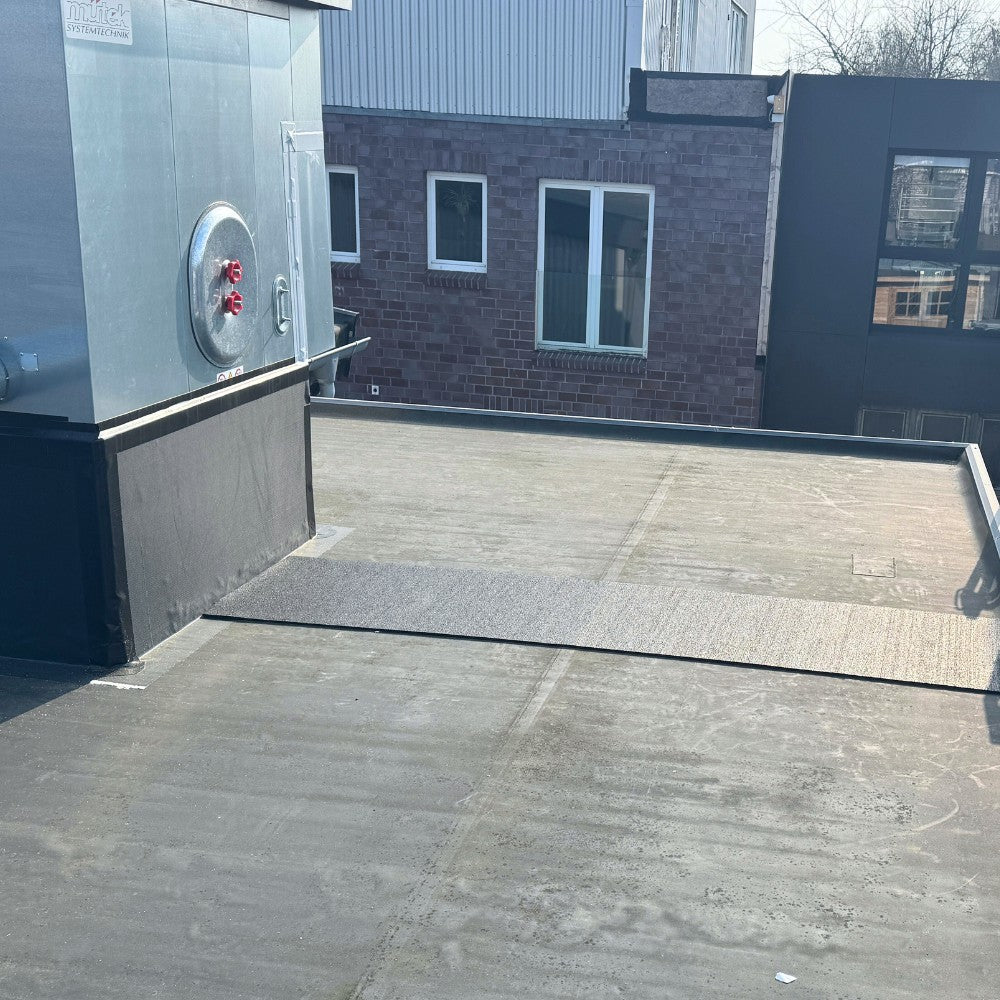 Mit dem DACHPROTECT Wartungsweg schützen Sie Ihre Dachabdichtung zuverlässig in Bereichen, die regelmäßig begangen werden – z. B. zur Wartung von Schornsteinen, Solaranlagen oder Lüftungseinheiten. Der robuste Wartungsweg aus Gummi wird einfach auf der Dachfläche aufgelegt und montagefrei ohne Durchdringung befestigt.